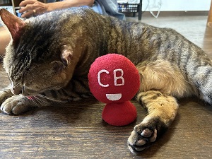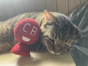 - いつものお気に入りスペースで寝ているしまじろうくん。コム太郎くんが近づくとちょっと乱暴ですが、抱っこしてくれました。