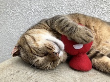 - デブ猫しまじろう。今日もお気に入りの場所で昼寝三昧。ボス猫時代の面影はなく、隙ありまくり。