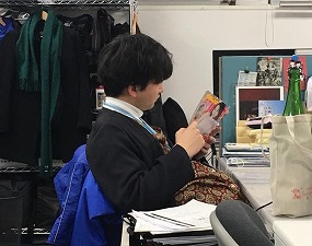 ちょいと休憩。束の間のひとときを過ごすジャックさん。コムブリッジ社内でみんなで愛読するヤンジャンを読んでおります。