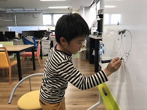 ちびっこ社長が久しぶりにご出社されました。ホワイトボードに絵(おしりたんてい)を描かれておりますよ。社長も月曜日には、新1年生。〝ちびっこ〟でなくなる日も近いですね。小学校ご入学、おめでとうございます!